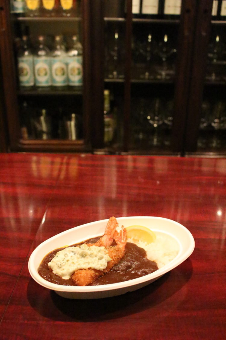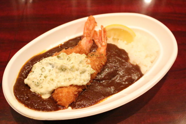 海老の頭を白ワインでじっくり煮込み、オリジナルブレンドのスパイスで仕上げた濃厚なルー。ぷりっぷりサックサクの海老フライとまろやかなタルタルソース。海老の旨みがしっかり効いた、食べ応え抜群の一品です。