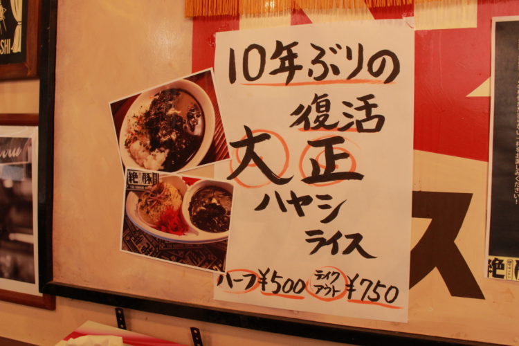 ちょっと番外編ですが、姉妹店の「麺やゼットン」では「大正ハヤシライス」をテイクアウトメニューとして販売しています。創業当時人気だったメニューですが、テイクアウト開始を期に10年ぶりの復活を果たしました。