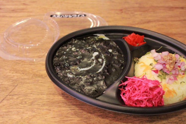 赤ワインとトラピストバターで2日間じっくり煮込んだルーは、イカスミと黒ごまで仕上げたまろやか濃厚な味わいです。