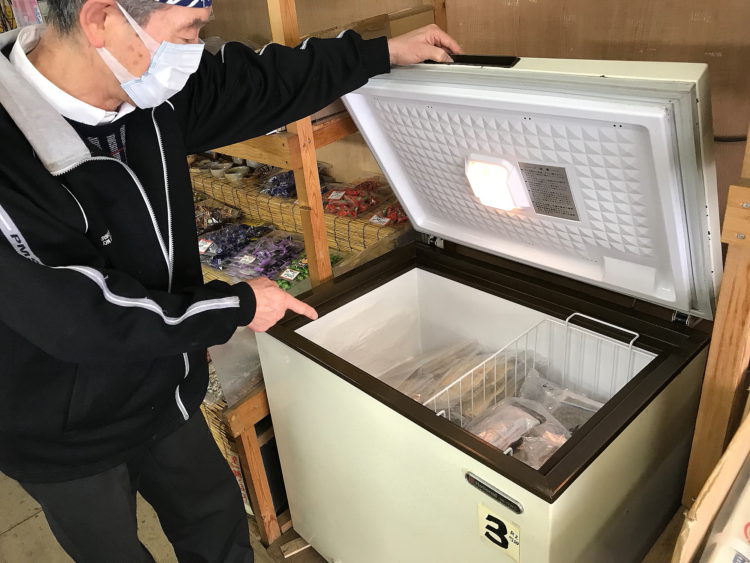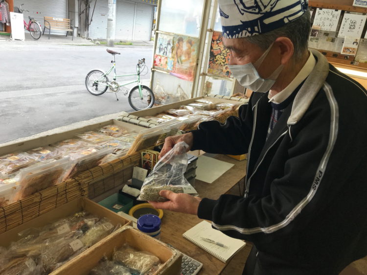 「うちの乾物を買っていただいたら、鮮度を保つために冷蔵庫に入れてね。冷凍庫に入れても乾物には水分がないから固くならず、すぐ食べられるよ」だそうです。
