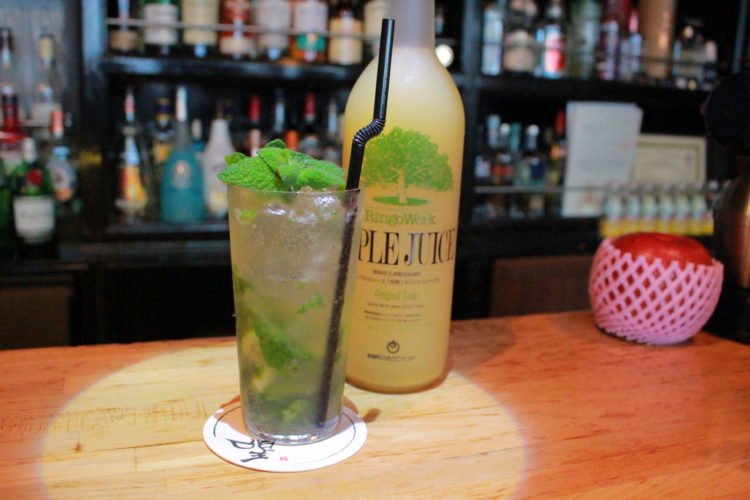 こちらはノンアルコールカクテル。地元ブランド「RingoWork」の果汁100%りんごジュース、新鮮な2種のミント葉、ジンジャーエールなどを合わせた一品です。一口飲めばまるで目の前にりんご畑の景色が広がるような、板柳を感じられる爽やかなモヒートです。