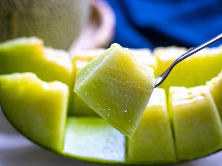 気になるのは味ですが、非常に香り高く濃い甘さが特徴的です。今まで食べたメロンと決定的に違うのは、果肉が甘いと口の中が痒くなる感覚(イガイガする?)が残りますが、このメロンに関してはそれが全くありませんでした。