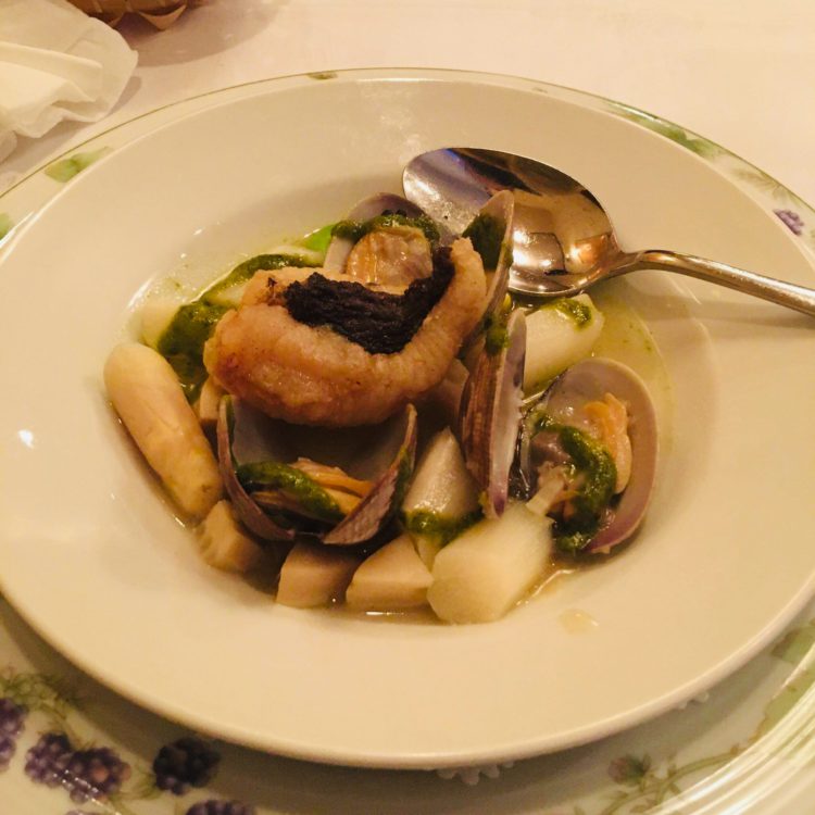 「お魚料理でアサリと白ワイン煮」