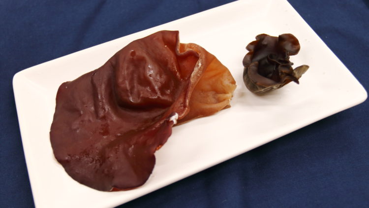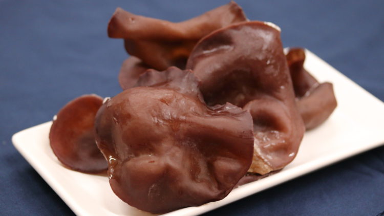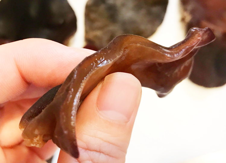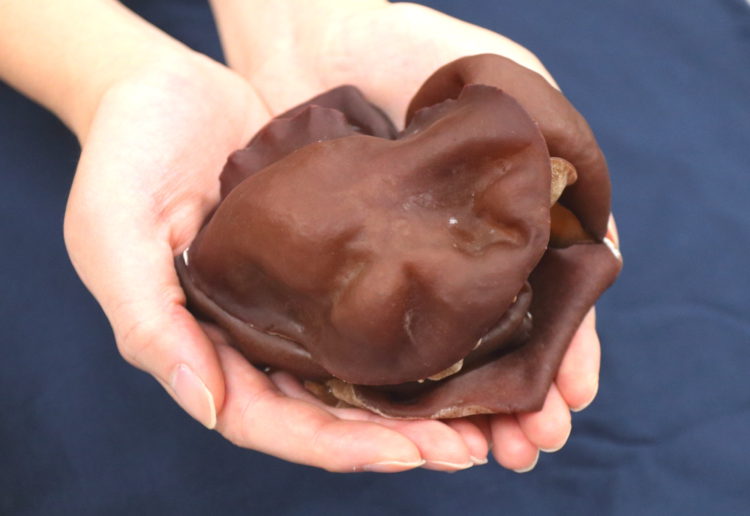 青森きくらげを改めてみると、中国産の乾燥きくらげよりも見た目が美しい赤茶色をしていて、肉厚です。