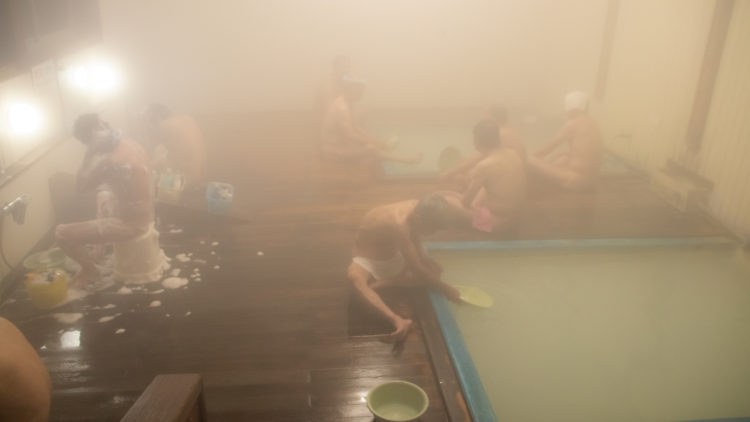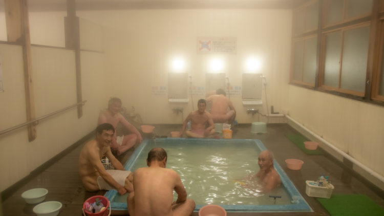 この日も1日だけ入浴無料ということもあり、地元の人たちがオープンめがけて一斉に温泉に入りに来ていました。