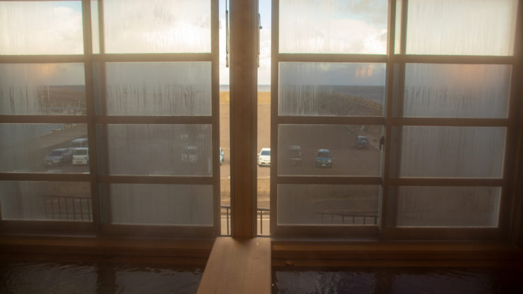 窓に目を向ければ津軽海峡が一望できる、オーシャンビューの超・超・超・贅沢な温泉です。