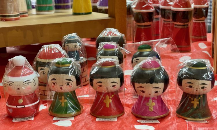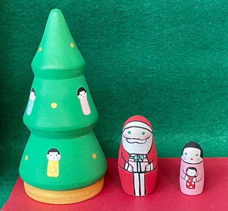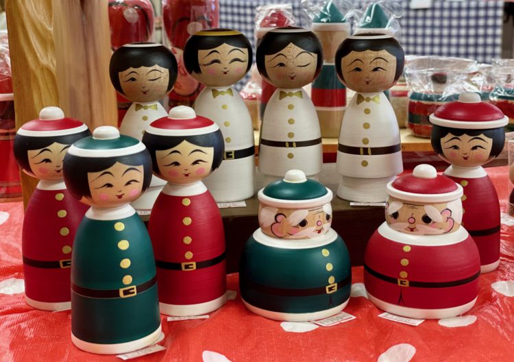 お目当ては「メリーこけしマス!」という、なんとも楽しげなクリスマスフェア!毎年、地元のこけし職人たちや、全国で活躍するクラフト作家らの、クリスマスや冬をテーマとした作品が賑やかに勢揃いする、とてもハッピーなイベントだそうです。