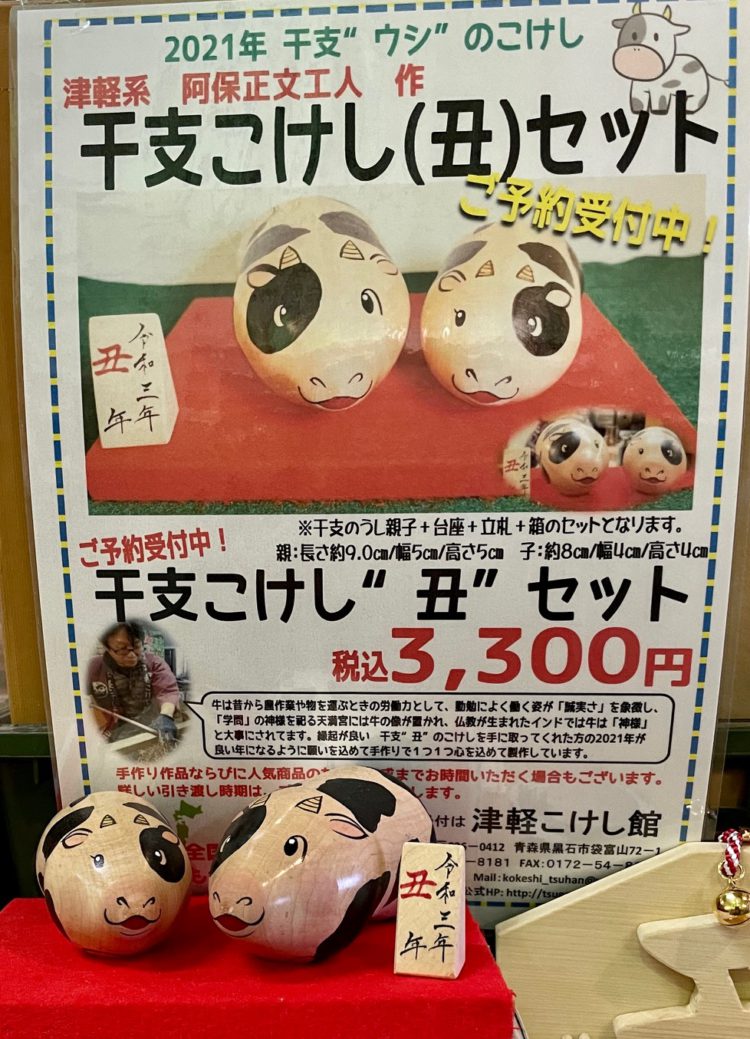 また、こちらは阿保正文(あぼまさふみ:1983~)工人による、来年の干支こけしです。愛嬌があって可愛らしい!