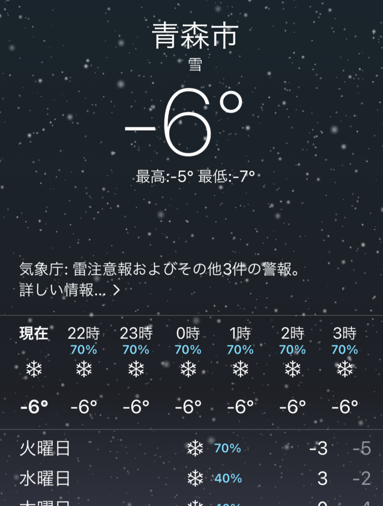 そして、待望の寒波が2月8日にやってきました。青森市内の気温はマイナス6度、まずまずの寒波です。