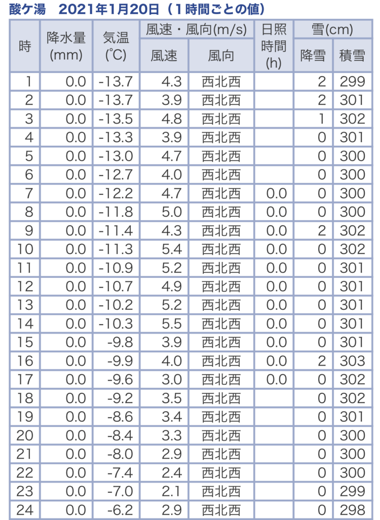 ちなみに、今年の大寒(1月20日)の酸ヶ湯の気温は、日中はマイナス10度を下回っており、さすが酸ヶ湯!といった感じです。