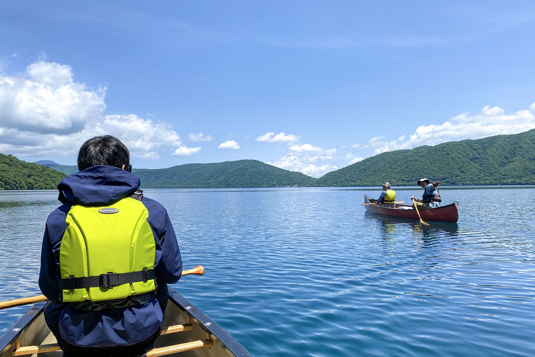 この開放感がたまらなく気持ちいいです!360度、見渡す限り新緑のパノラマ!まさに絶景の中にいるこの感覚はカヌーならではです。