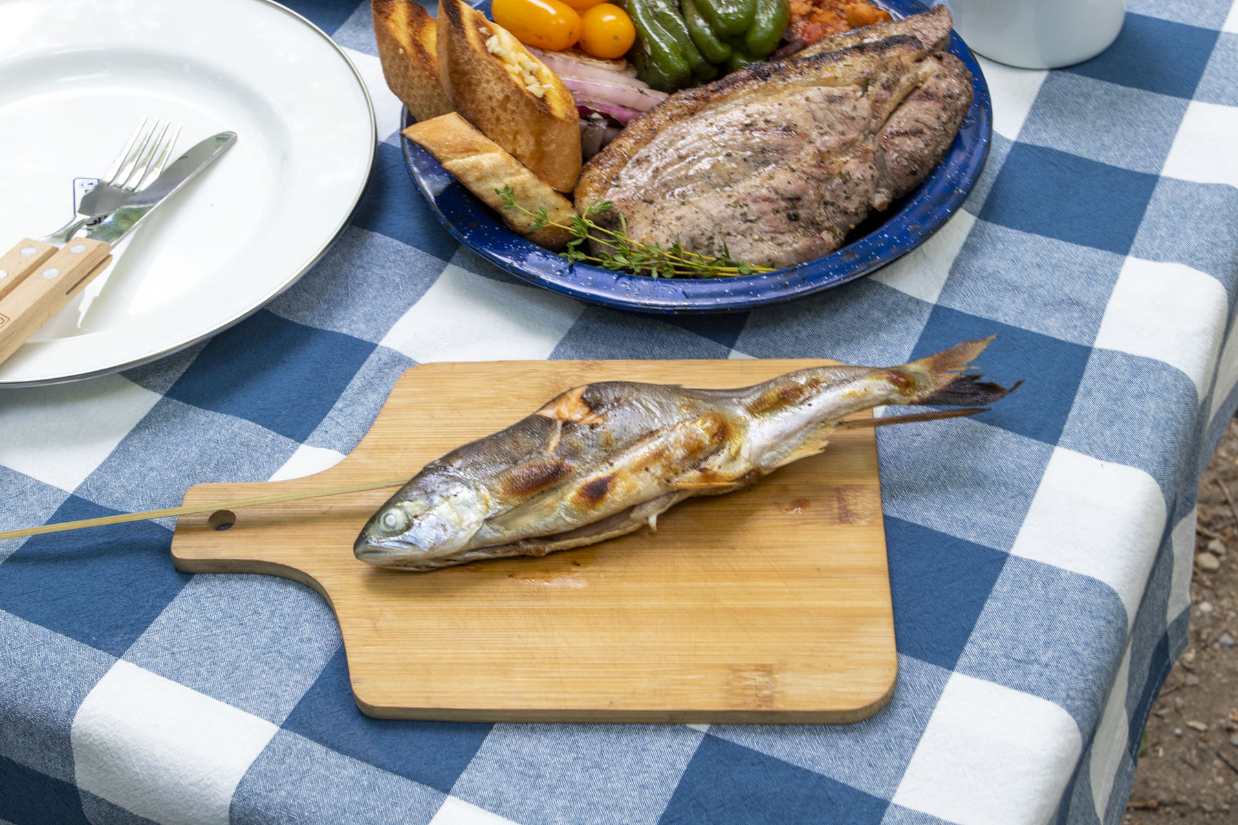 ほどよく焼けたヒメマスも、とっても美味しそう!