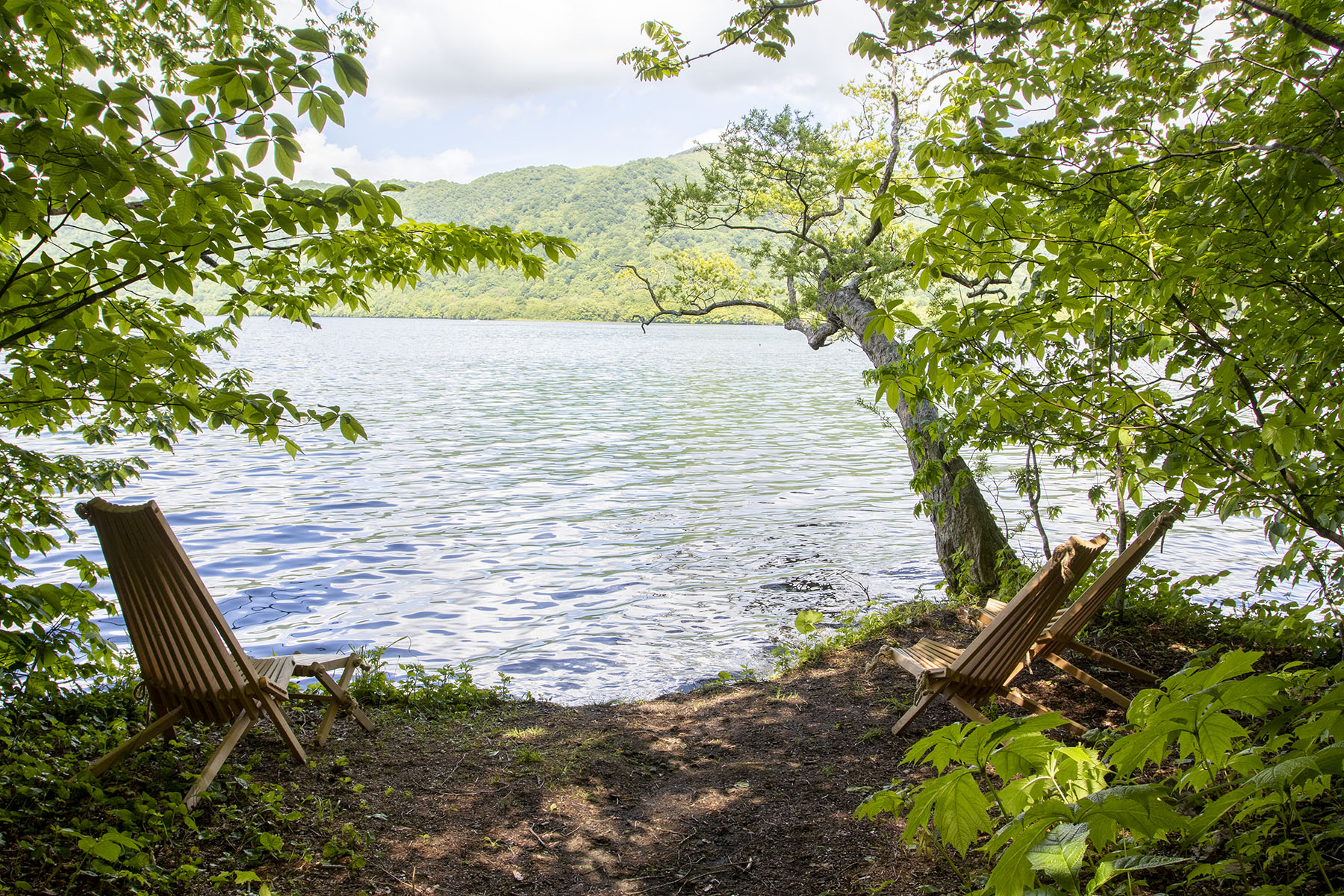 サウナ小屋を出て10メートルくらい歩いて下りると、目の前には十和田湖があり、思い切って入ると、水の冷たさを感じるのと同時に、目の前に広がる自然の美しさに感動するはずです。