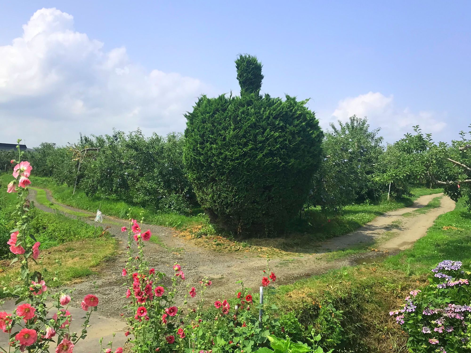 このプログラムでは、まず、この7本から得られた実で作られた貴重なりんごジュースで乾杯しながら、ガイドさんと共に、りんごの深い話を聞きながら散策します。