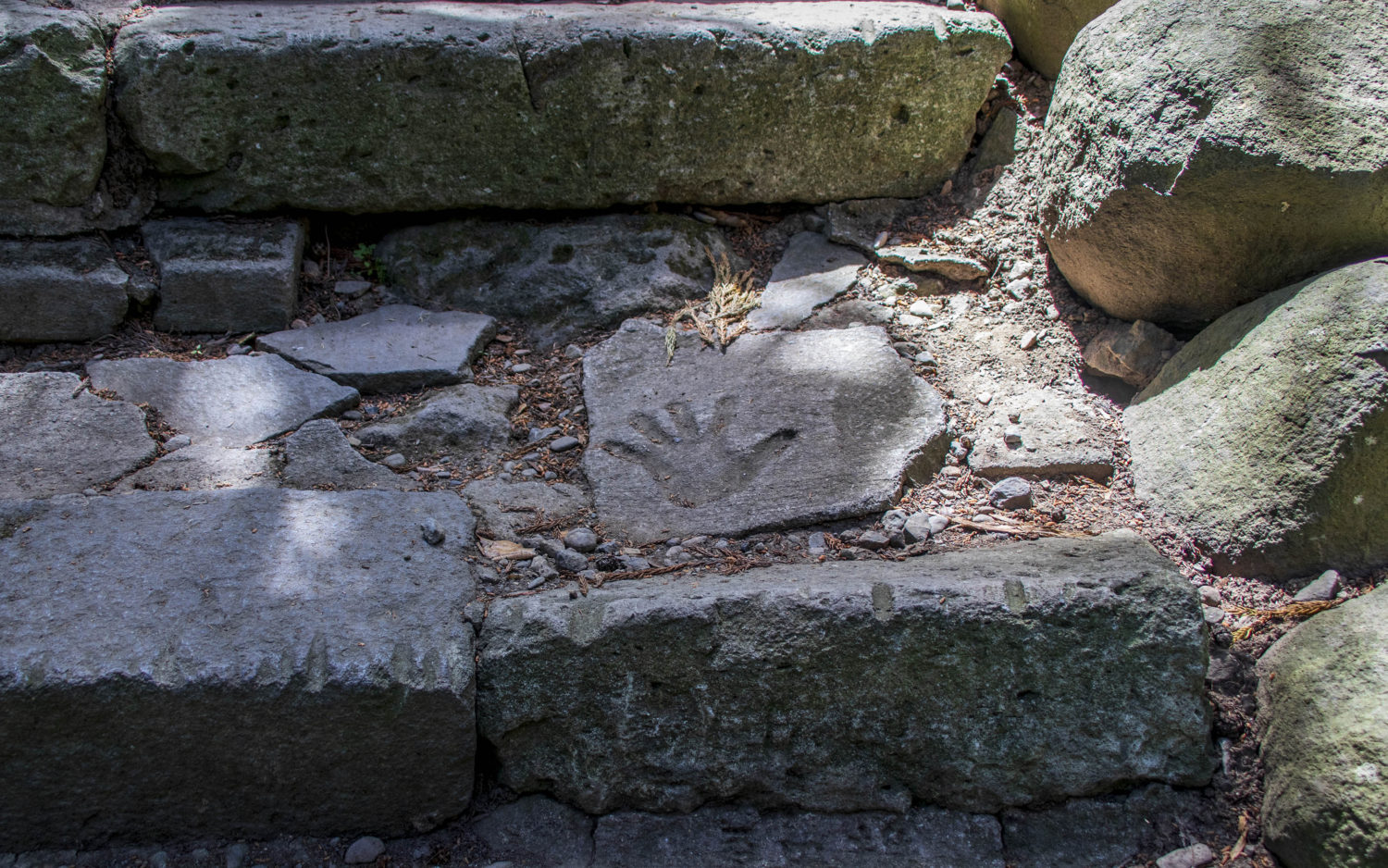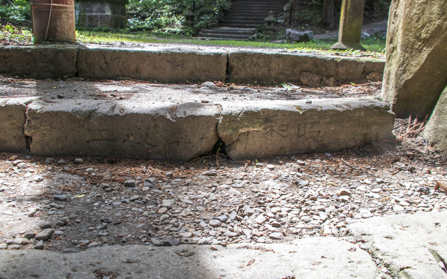 おや?石段に何か字が彫ってあります。よく見ると「昭和」と書いてあります。