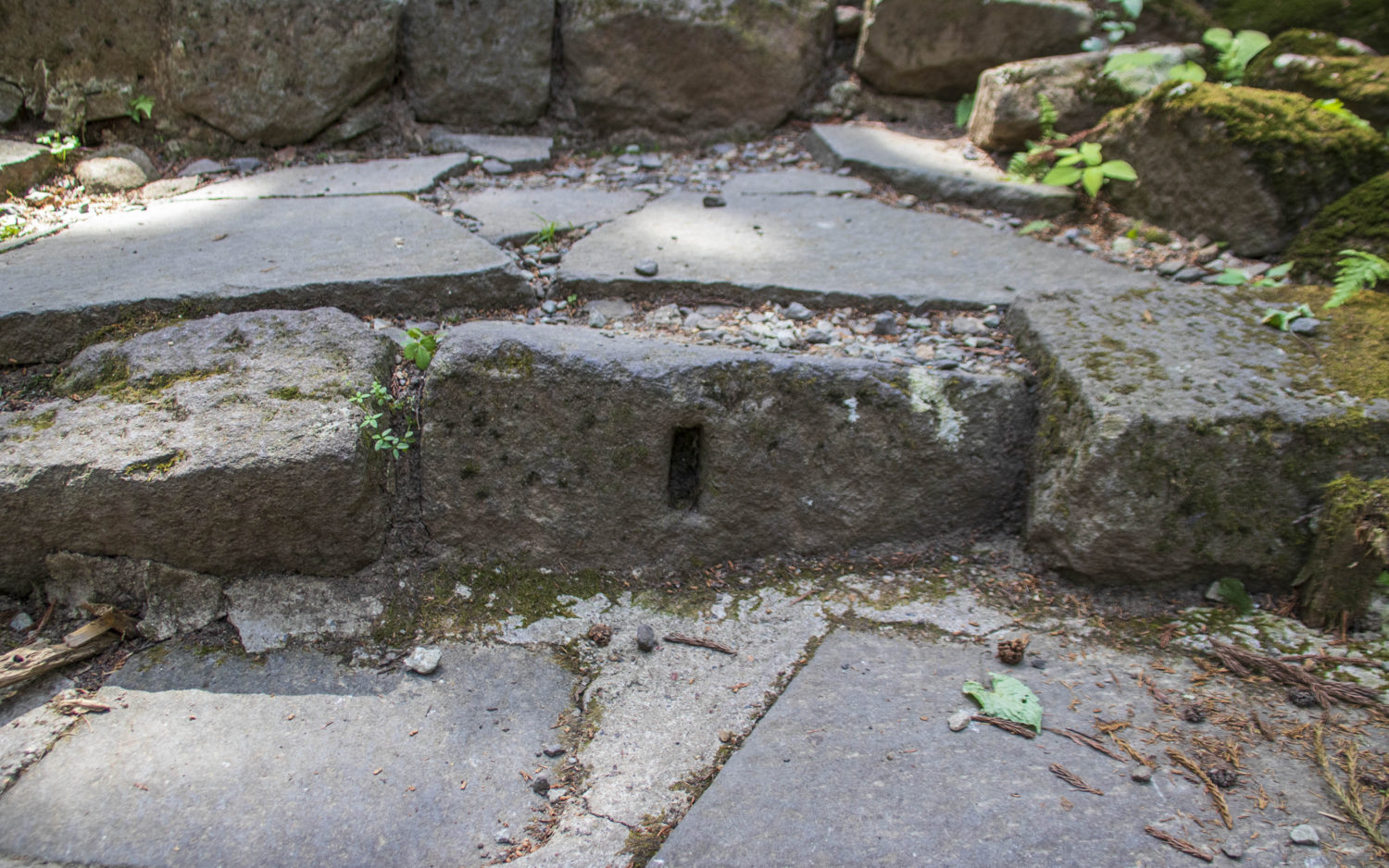 今回は、登るのに必死だったので、確認できませんでしたが、以前登った時に発見した「矢穴」や