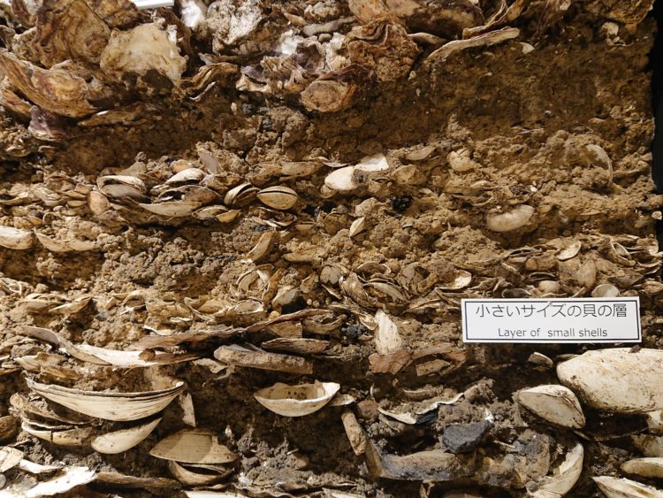「そうですね。たとえばここ。時期によっては、小さい貝しかなかったりするんです。あまり貝が取れない、大変な時期だったのかもしれません。でもその上には、巻き返すようにカキが重なっています。それぞれどういう時期だったのか、想像しながら見るとおもしろいですね」