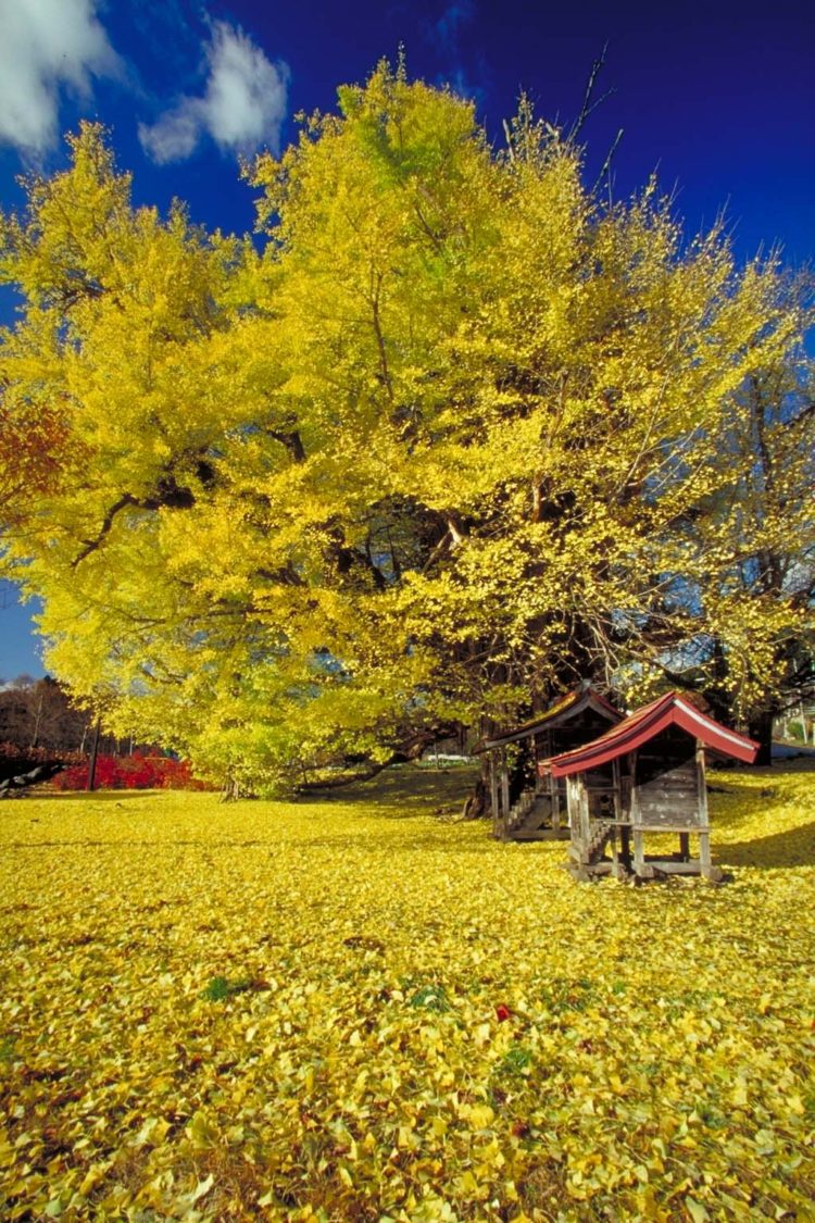 「紅葉の時期はイチョウの木もいいですね。県の天然記念物に指定されています」