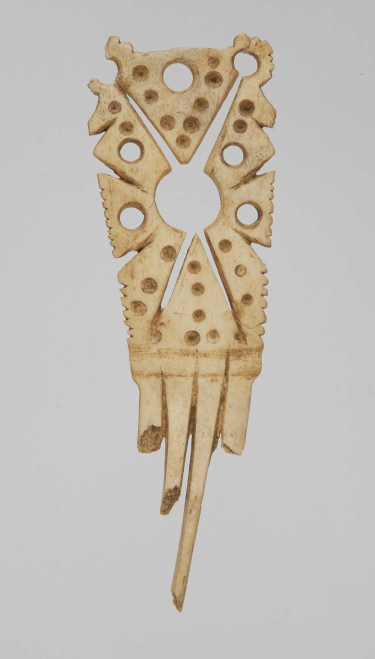 「首につけているのは骨角器です。頭には鹿角製櫛、肩から掛けてるのが人面付き土器で、中にシジミが入ってます」