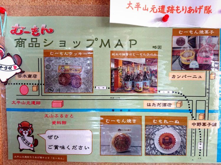 「ありがたいことに、みなさんいろんな商品をつくってくれています。笹木商店さんは『むーもんクッキー』、はただ酒店さんは『むーもんラベルの純米吟醸酒』、カンパーニュさんは『むーもんビスケット』、中野菓子舗さんは『むーもん焼き』と『むもれーぬ』」