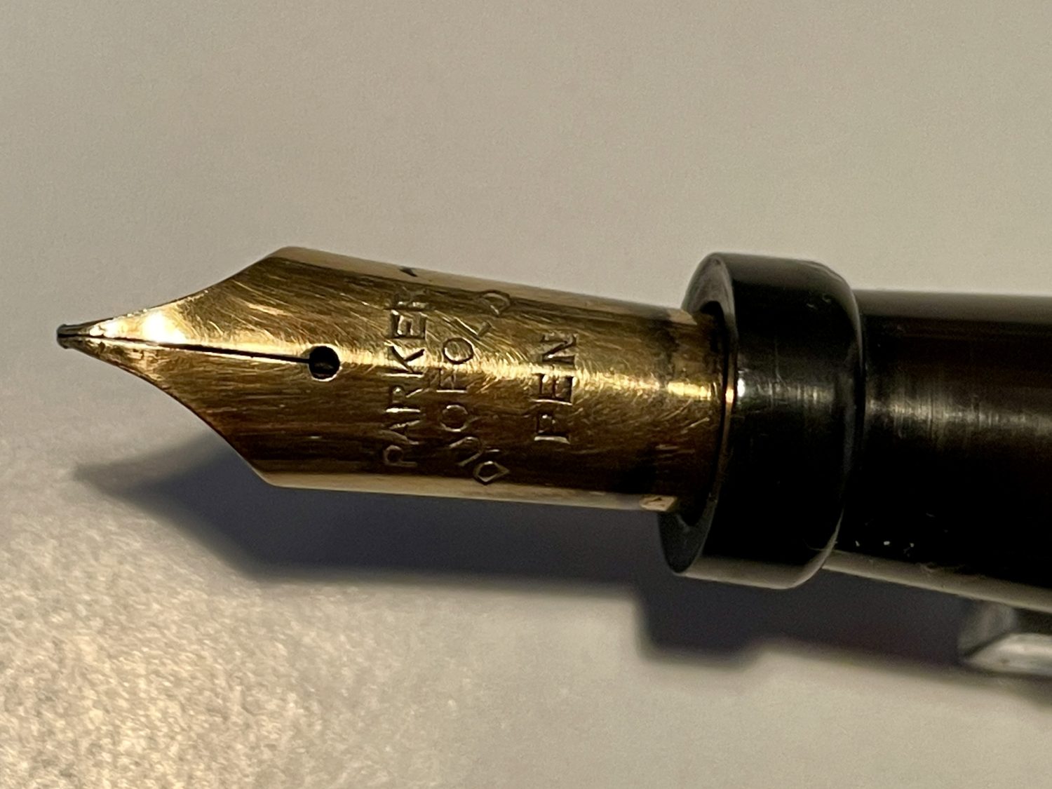 大正10年 (1921) にPARKER(パーカー)社が発表したDUOFOLD(デュオフォールド)!従来の万年筆に比べ軸が太くて大型です。「DUO(デュオ)」とは、インキ容量も耐久性も「2倍」という意味でのネーミングだったそうです。また、ご覧の通り、当初万年筆には、ポケットに引っ掛けるためのクリップは備わっていませんでした。