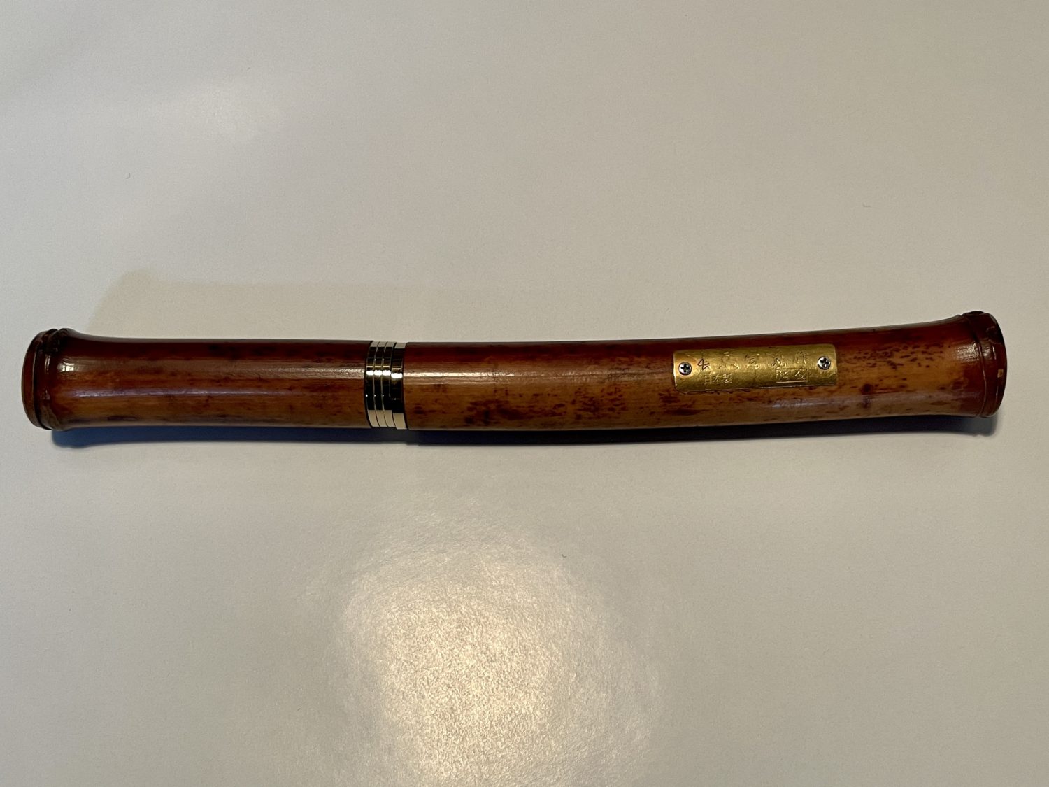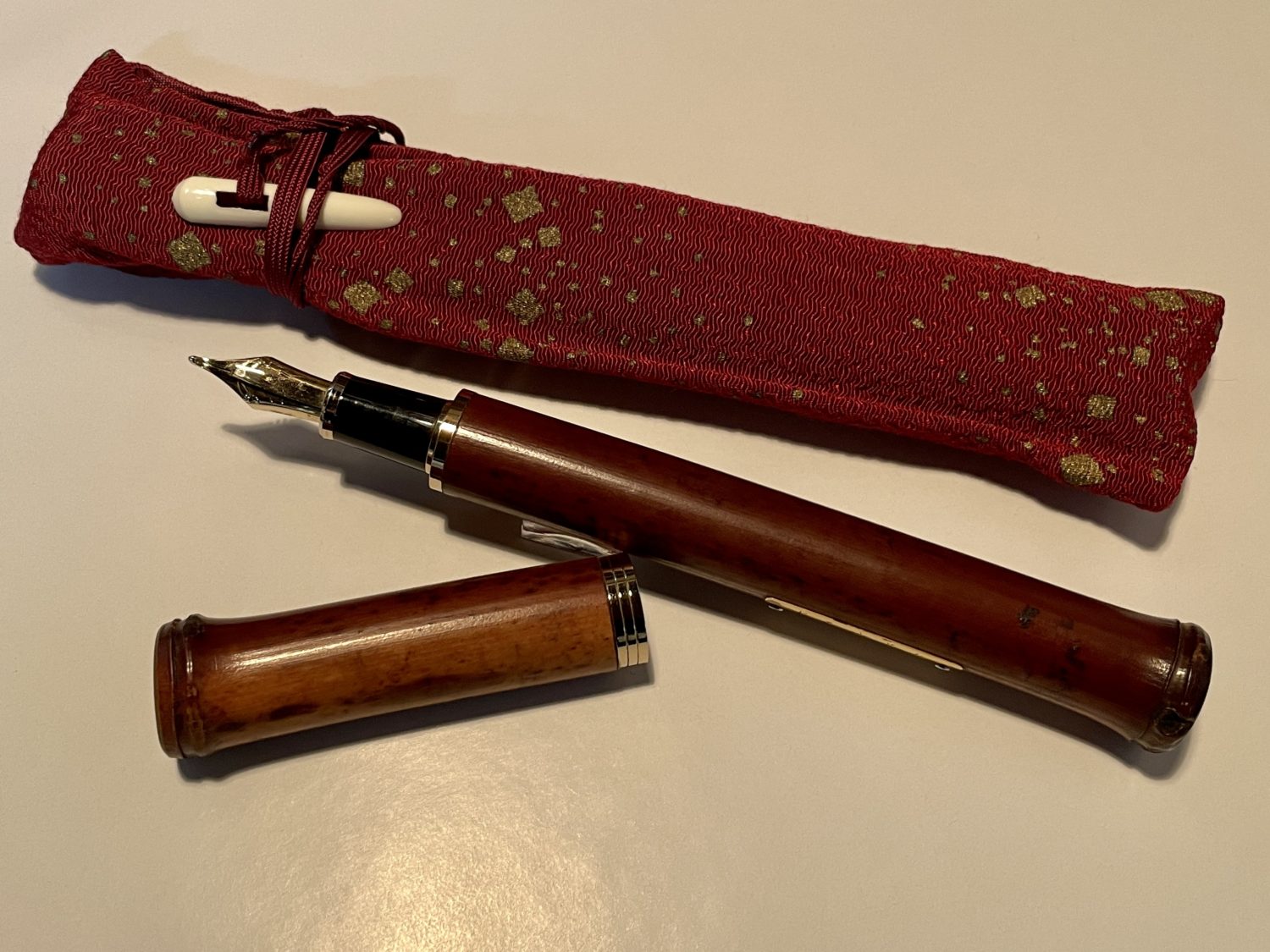 知る人ぞ知るペン職人、長原宣義氏による万年筆です。なんと、古民家の囲炉裏で使われていた天然のすす竹から作られているそうです。