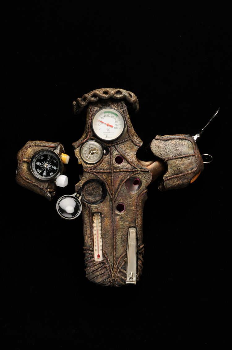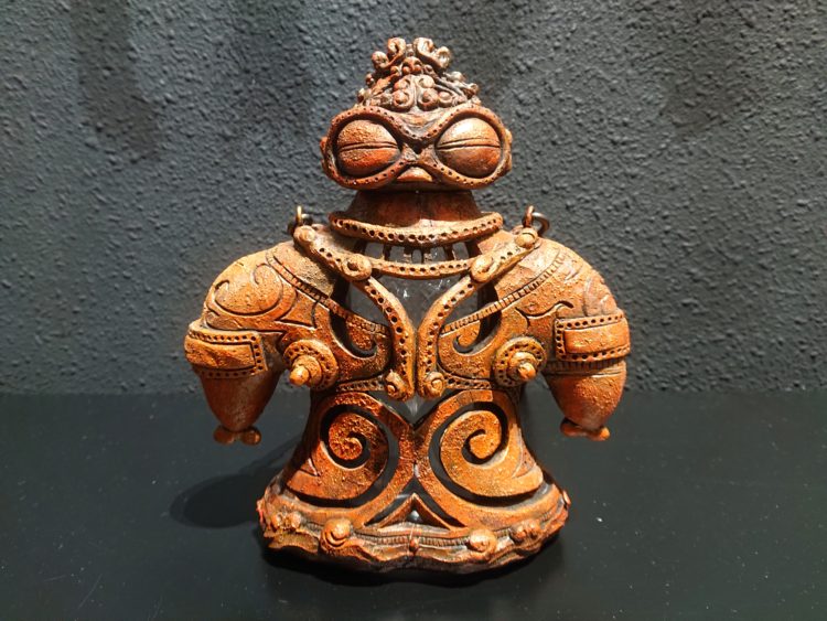 「まず遮光器土偶は、土偶をペットボトルケースにしたらおもしろいんじゃないかと思いついて。あの土偶は、美術大学で習ってきた彫刻とかとはまったくちがうんです。筋肉とか、解剖学的なものとも全然ちがうし。宇宙観を実感したというか」