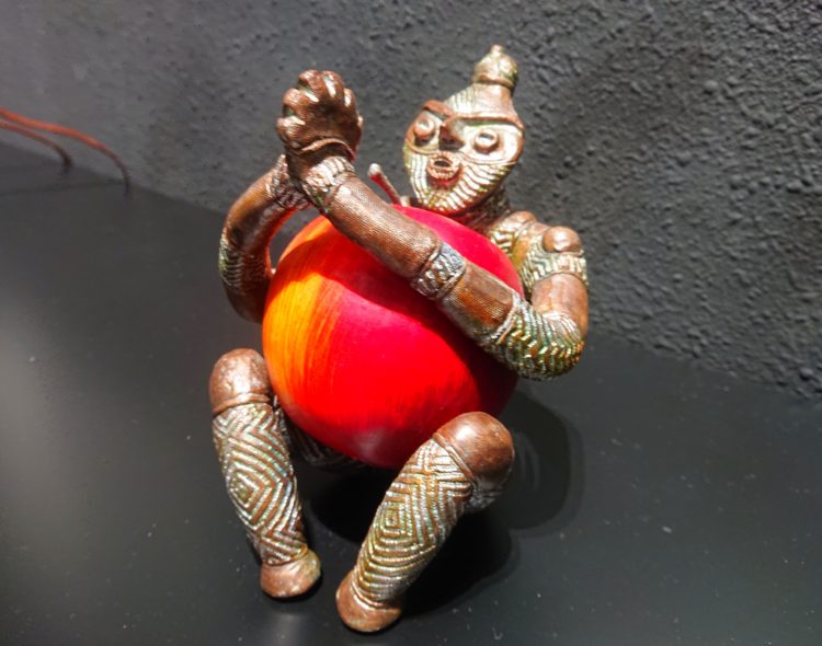 - たしかに(笑)。続いて合掌土偶ですが…りんごがうまく収まってますね。