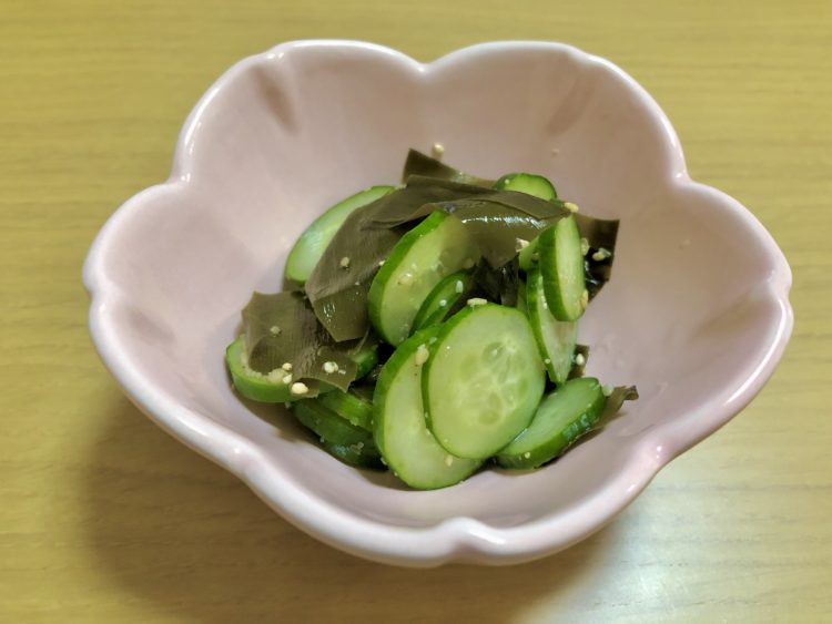 見た目はわかめに見えますね(笑)昆布の塩味とレモンの酸っぱさが合います。きゅうりのシャキシャキと昆布の少し歯ごたえのある食感も楽しいです。