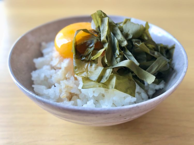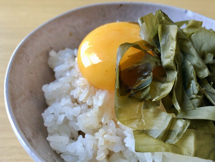 続いて、ごはんで更に何かできないかと思い、卵かけご飯にトッピングしてみました。いやーこれは料理と呼べるかわからないくらい簡単ですね。昆布を今回は包丁で刻んでみました。あとは、乗せただけ。