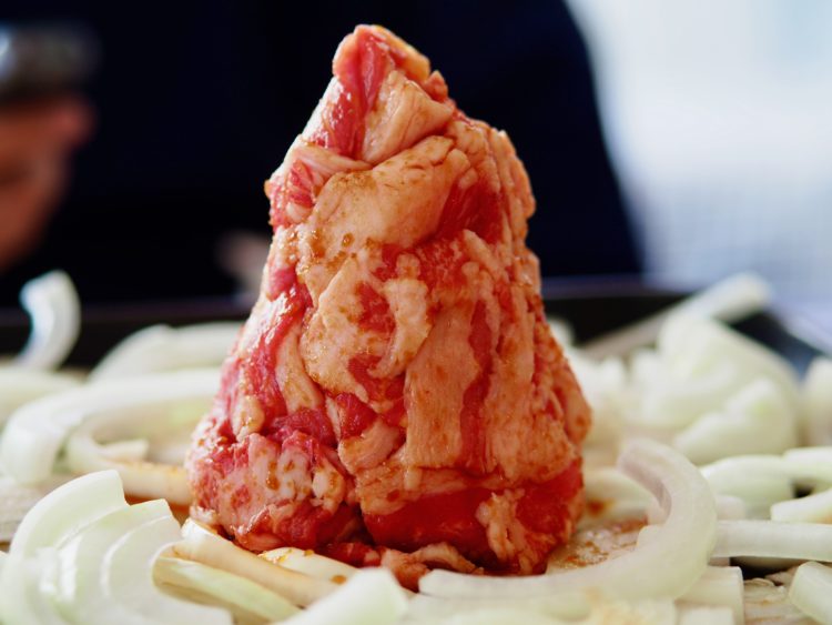 今日は特別に畑中さんが、牛のバラ焼きを目の前の鉄板で焼いてくれた。ちょいちょい飛び出したギャグは文字数制限のため割愛する。