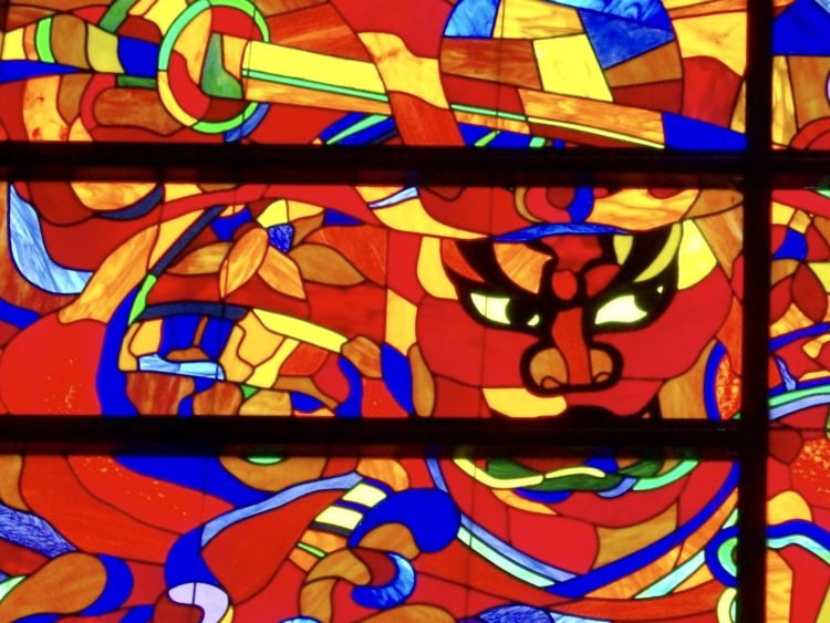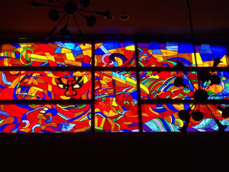 原画・監修は、かつて東京芸術大学壁画ステンドグラス非常勤講師を務め、日本のステンドグラス作家の草分け的存在として活躍した池内康氏だそうです。