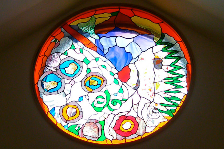子供たちの思いが詰まった丸窓です。なんて素敵なんでしょう!他の 2面のステンドグラスも、ぜひ見てみたいです!