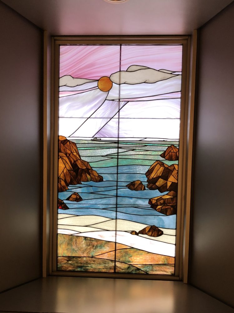 製作は、パブリックアートで有名なクレアーレ熱海ゆがわら工房。青森空港の大型ステンドグラス「青の森 へ」を手がけた工房です。