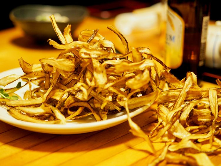 ゴボウ揚げはシンプルな塩味で手が止まらなくなる。