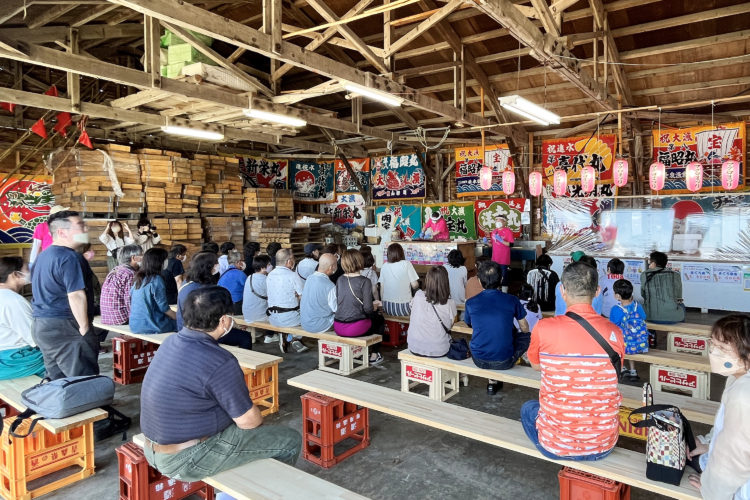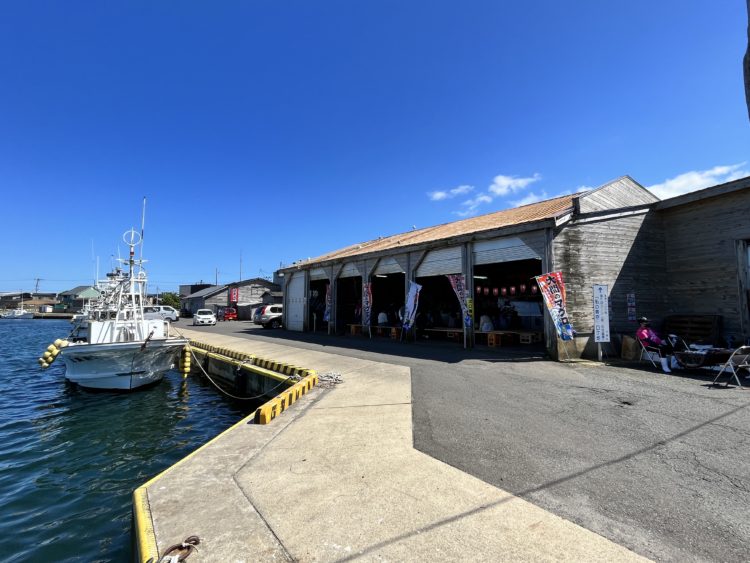 12時10分、ついに会場(大間港旧冷蔵庫特設会場)に到着!