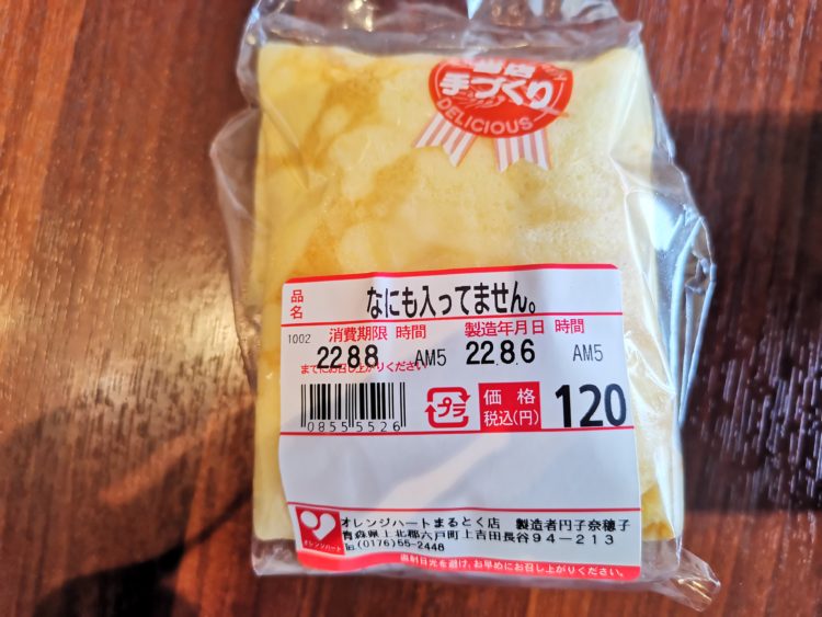 新幹線のシートにもたれて思い出していた。十和田から八戸に戻る途中、Tさんは「あった」と言いながら地元のコンビニ「オレンジハート」に車を止めた。青森県にしかない超ローカルなコンビニで、手作りの総菜やサンドイッチ、弁当、おにぎりが人気という。Tさんが買ったのは「なにも入ってません」と書かれたクレープだった。運転しながらTさんは嬉しそうだった。「以前、この何も入っていませんクレープを買って食べたら、何も入っていないといいながら、大量のホイップクリームが詰まっていたので驚きました」