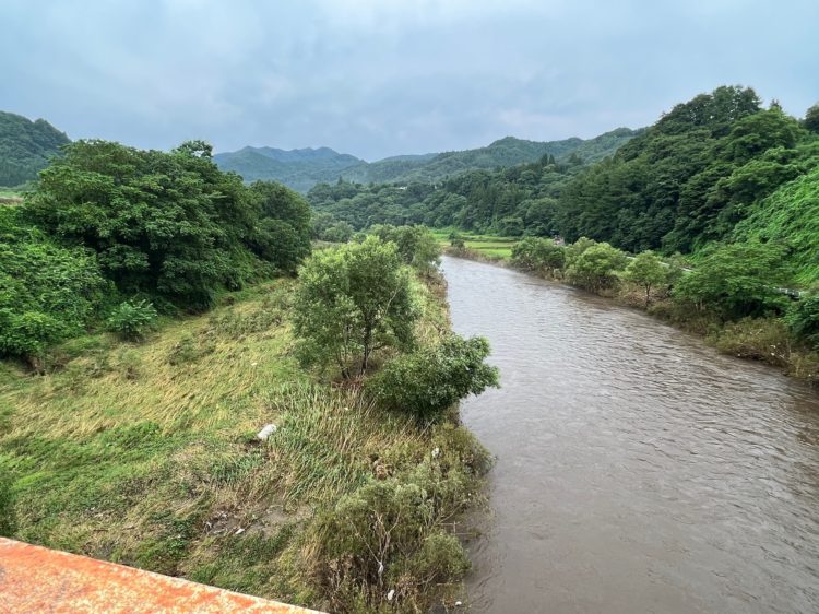 岩手県側は、山と森。青森県側は、草の生い茂った河川敷。ここがまた、数日前の大雨のときにけっこう増水していたようで、背の高い草がことごとく下流側に向かって倒れている。水の勢いを感じてちょっと怖い。