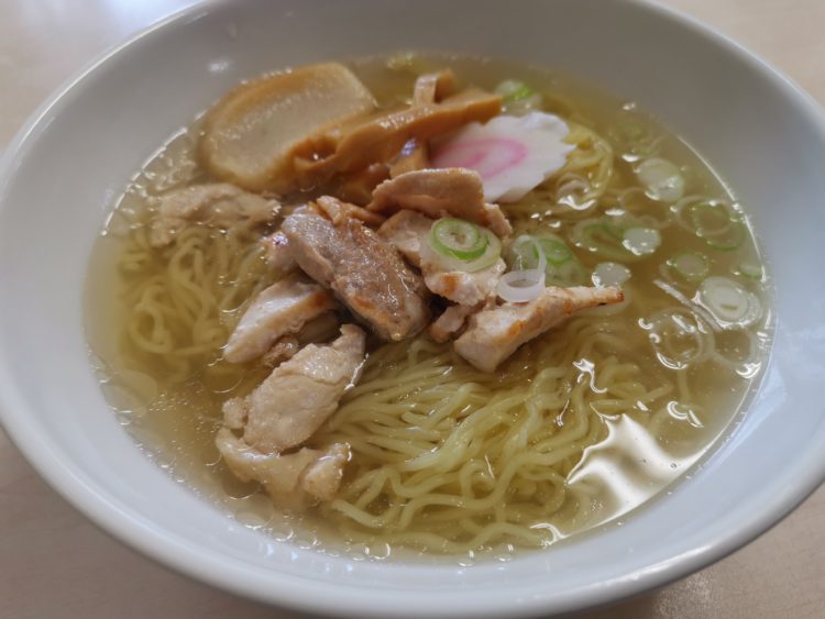 Tさんが店内の食堂で遅い朝ごはん代わりに「シャモロックラーメン」を食べている間、私は駅前の木陰で考えていた。総務省家計調査(2019~2021年)によれば、中華麺の購入額で青森市は盛岡、山形に次いで全国3位。カップ麺は盛岡に次いで2位だ。しかしこれは「購入額」であって、店で使った金額は含まれない。地元の人と話をすると、必ずといっていいほどひいきのラーメン店の話題が出る。食堂メニューの筆頭がラーメンで、「村の駅 よもっと」の食堂に至ってはラーメンしかない。最初に行った「金谷マート」の食堂ののぼりも「らーめん めし」だった。青森県民がラーメンにつぎ込むお金は相当な額になるだろう。ラーメンは青森の県民食と断定する。