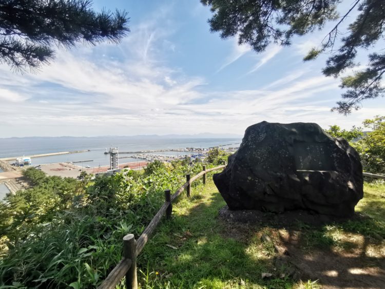 観瀾山は外ヶ浜町の名所のひとつで道路沿いに案内看板が見える。細く曲がりくねった道を上って駐車場に車を止め、展望台へと歩いた。展望台の周辺には太宰の文学碑や句碑が置かれていたが、周りは松の古木ばかり。桜の木はまばらで、しかもどれも若木だ。花見の場所はここではない。作品には確か「芝生にあぐらをかいて」とあった。ならば海沿いの平地だろうか。といってもそこはいま、海水浴場とキャンプ場になっていて手掛かりはなかった。太宰は一体どこで花見をしたのか。
