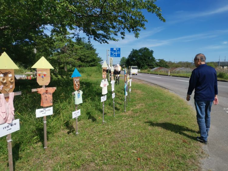 かかしにはそれぞれの製作者の名前が書いてある。幼稚園児や小学生の名前を見ていると、自分の孫のような子どもたちが無心にかかしを作っている情景が浮かんだ。孫たちとはコロナのせいでしばらく会えていない。そろそろ顔を見に行きたいな。