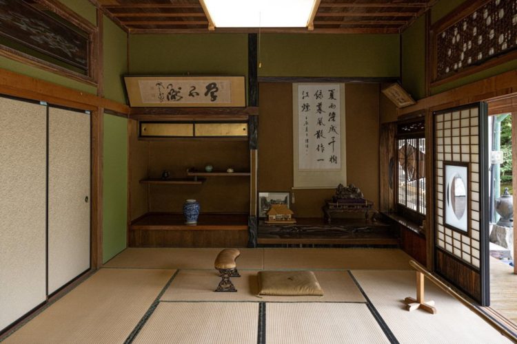 贅を尽くした床の間には黒檀、紫檀、白檀など沢山の種類の木が使われ、一階は和室、二階は洋室と、判然異なった様式が上下にある建物は他に例はなく、文明開化を象徴したような建物でした。