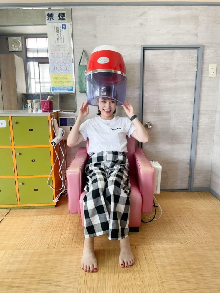 被り型のヘアドライヤーが今だに現役っ!懐かしすぎて記念写真をパチリ。皆様も是非。