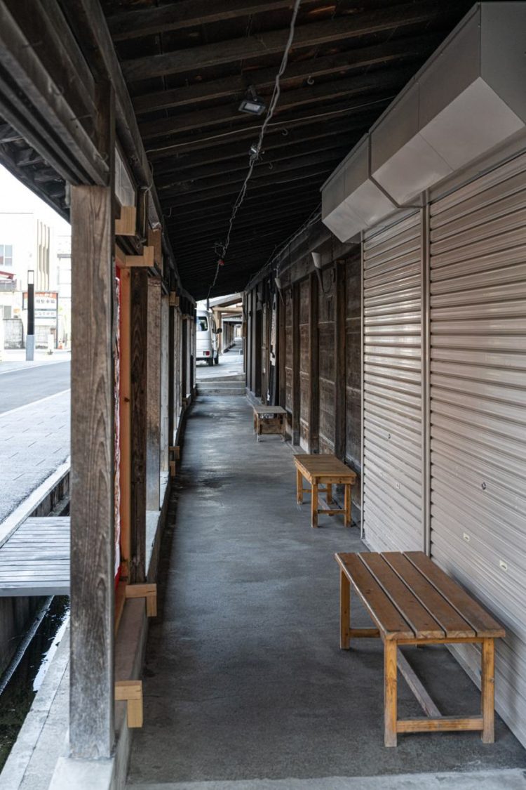 この様な雪よけの屋根がある、ノスタルジックなこみせ通りにあるこれまた歴史ある一軒の建物の前へ。