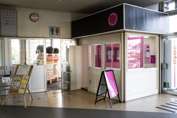 黒石駅の構内には、キヨスクだった場所を活用して、映像作品が観られるスペースがありました。こちらにも是非お立ち寄りを。