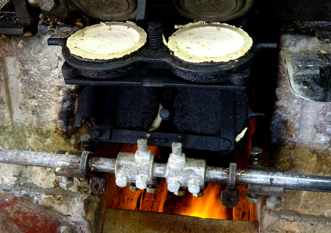 せんべいづくりは重労働で、高い技術も求められます。その日の湿度や小麦粉の水分量に応じて、焼く時間の長さや温度を調整しているそうです。
