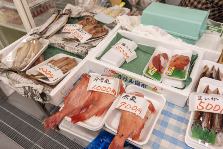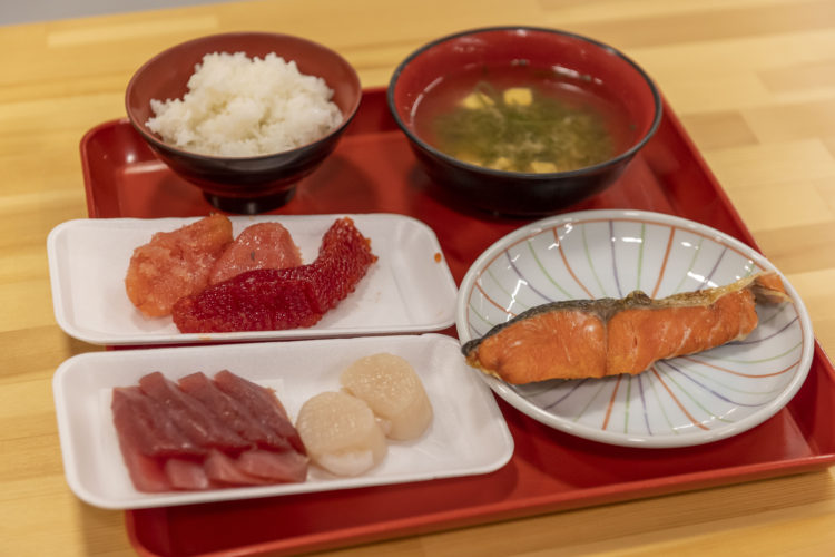 さらに、市場に来たなら欠かせない楽しみは朝食。場内にある「朝めし処魚菜」でご飯と味噌汁(セットで300円)を購入し、あとは焼き魚、お刺身、ご飯のお供など、お好みで購入し自分だけの贅沢なオリジナル朝食を作りましょう。