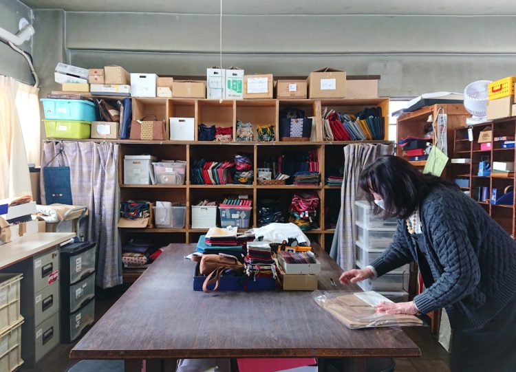「こぎん人口っていうのはすごく多くなりつつあって、こぎん作家さんもたくさんいるんだけど、うちのいちばんの特徴は、組織としてやってること。たとえばイベントの記念品として、名刺入れを200個つくってほしいっていう場合、個人に頼んだら何年もかかっちゃうよね。うちは内職のシステムでやってるから、そういう注文にも対応できる」