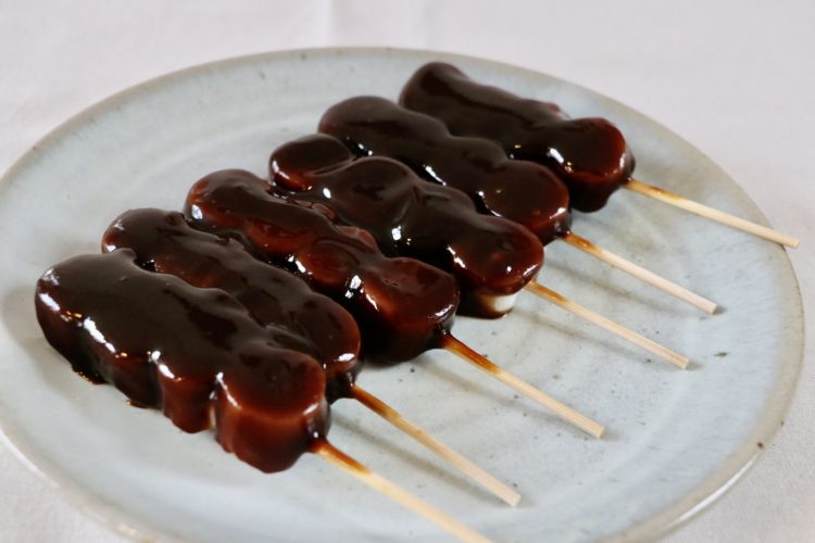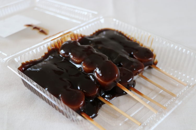 串だんごは青森県産のうるち米を使用し、上新粉にも「まっしぐら」「つがるロマン」を使用するなど、とことん県産米にこだわっています。黒蜜は赤ザラメを中心に、深いコクのある甘さに仕上がっています。