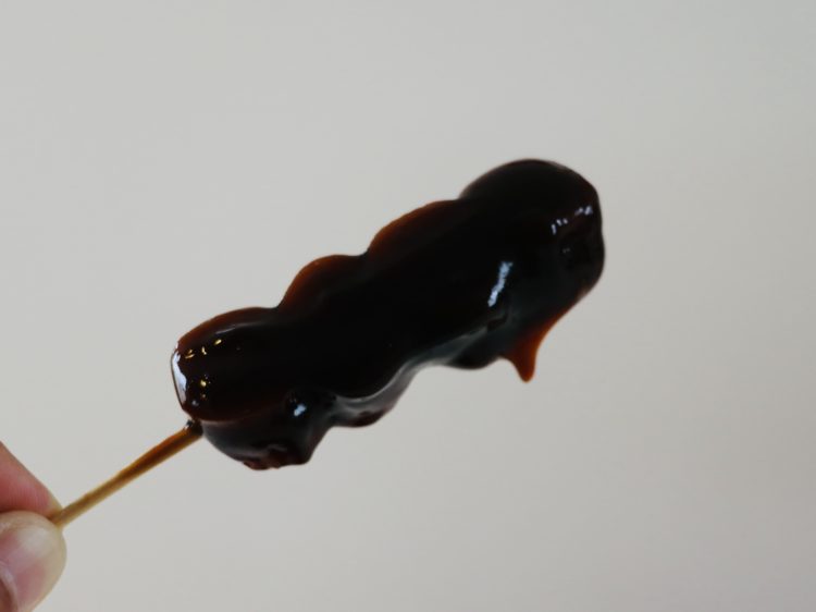 フワフワと柔らかいだんごと、光沢がありねっとりしていて垂れそうで垂れない黒蜜との最高の組み合わせがここに誕生!黒蜜の上品な甘さが口の中に広がります。